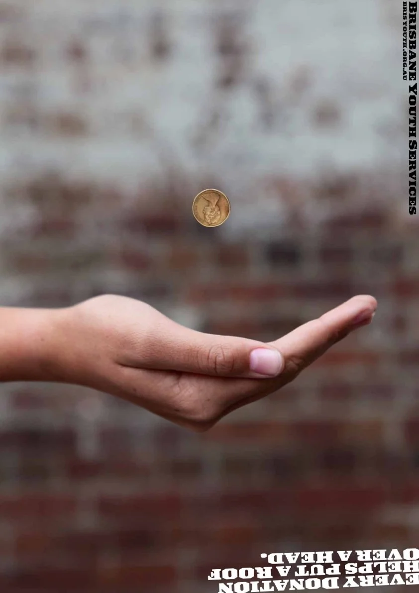 Produces and art directed this poster for a friend of mine who won a competition based on the idea. By positioning the headline upside down, the benefit of the donation came to life. Although it shows giving shelter to our late Queen…