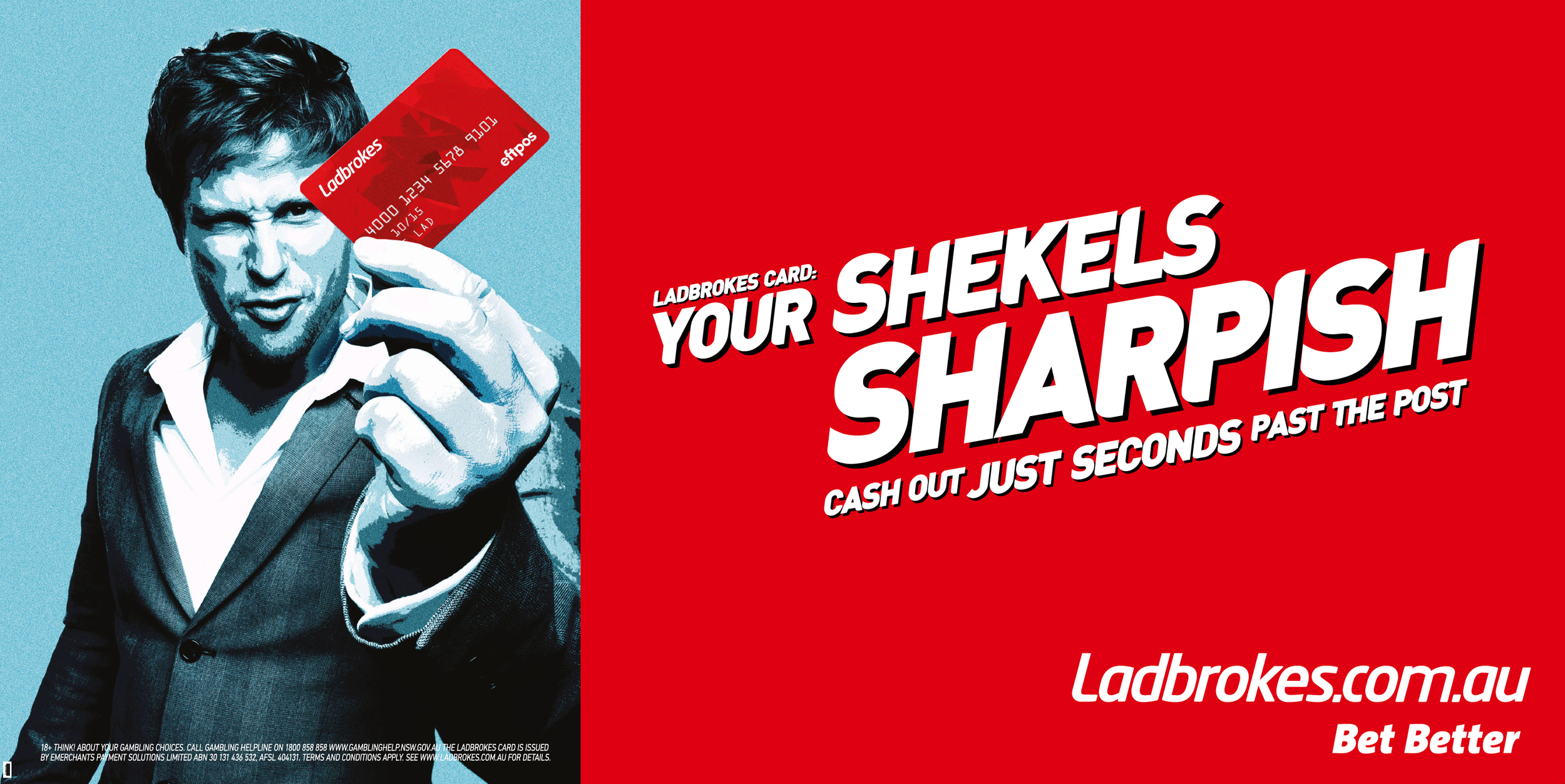 The relaunch of Ladbrokes in Australia. With the competition in Australia so bloody Australian, patying homage to the heritage of the client made complete sense as a differentiator. The main character was found, an original Chelsea lad. With the cockney accent, Ladbrokes stood out. In radio. In tv. And in outdoor.